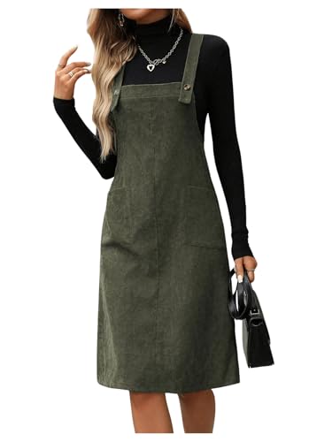 chouyatouDive into fall fashion with the chouyatou Women's Corduroy Overall Dress. This trendy midi jumper dress features adjustable straps and a flattering A-line silhouette, perfect for layering and making a style statement.