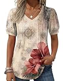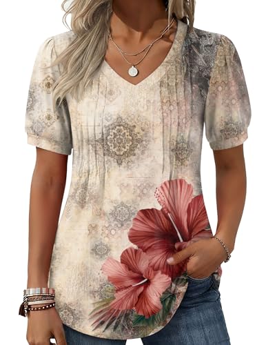 ZeagooEmbrace bohemian chic with Zeagoo's Floral V-Neck Blouse. Featuring puff short sleeves and pleated details, this top combines effortless style with a breezy, flowy design, perfect for any fashion-forward wardrobe.