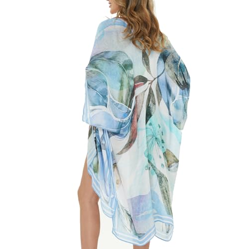 STARWHISPEREmbrace bohemian flair with this lightweight kimono cardigan, perfect as a chic swimsuit coverup or a stylish layer for any summer occasion. Features a vibrant blue big leaves print.