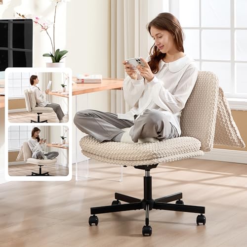 OLIXISElevate your workspace with the OLIXIS Criss Cross Chair, designed for ultimate comfort. This armless, wide cross-legged chair features plush PU leather, a supportive back, and smooth swivel wheels, perfect for any home office or bedroom.