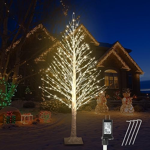 IJGElevate your holiday decor with this 5FT Lighted Birch Tree, featuring 560 twinkling warm white LED lights, complete with a timer. Perfect for both indoor and outdoor festive decorations.