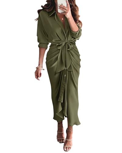 BTFBMElevate your party look with the BTFBM Maxi Dress, featuring a chic lapel neck, stylish button-down design, and a flattering belted waist, perfect for cocktail evenings.