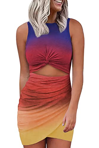 Acelitt Chic Tie Dye Twist Tank Dress for Wedding Guests