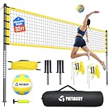 3Patiassy15% OffPatiassy Outdoor Portable Volleyball Net Set System - Quick & Easy Setup Adjustable Height Steel Poles, PU Volleyball with Pump and Carrying Bag for Beach Backyard (Yellow)
