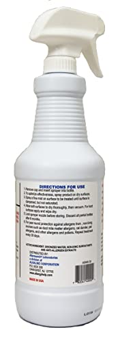 The Allersearch Anti Allergen Spray 32 is a great product for anyone looking to reduce allergens in their home. The spray is designed to neutralize allergens from non living sources such as dust and mite waste, cat and dog dander, and pollen. It comes in an easy to use spray bottle that is fragrance free and non staining, making it a great choice for those with sensitive noses or allergies.