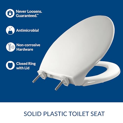 The Bemis 7800TDG 000 Commercial Heavy Duty Closed Front Toilet Seat with Cover that will Never Loosen Reduce Call backs is a great choice for commercial and large scale use. It is made from injection molded solid plastic, which makes it extremely durable and long lasting. It also has non corrosive 300 Series stainless steel posts and pintles, making it resistant to rusting and corrosion.