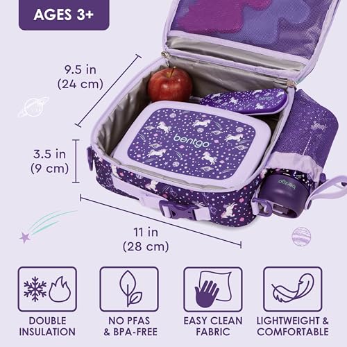 The Bentgo Double Insulated Kids Lunch Bag is an excellent choice for parents who want to ensure their children s lunches stay fresh and safe during transport. It is made with superior fabrics and detailed finishes, making it durable and long lasting. The bag also features ultra thick, non toxic double insulation that keeps meals fresher for longer while transporting food between school and activities. With 8 fun and colorful prints to choose from, there s a print for every personality.