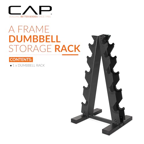 The CAP Barbell A Frame Dumbbell Weight Rack, Color Series is an excellent choice for those looking to maximize their home gym space while still having access to a wide range of weights. This rack is constructed with high quality steel tubing and finished with a durable powder coat that ensures it will hold up to 200 pounds worth of dumbbells.