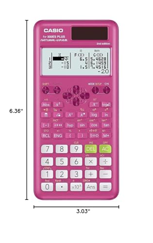 The Casio fx 300ESPLS2 Pink Scientific Calculator is a must have for students, professionals, and anyone who needs to perform complex mathematical operations. This calculator is designed for ease of use and accuracy, allowing users to quickly and easily solve the most difficult of equations. The calculator has a Natural Textbook Display that can display fractions, derivatives, integrals, sums and other operations in the same way they appear in math textbooks. It also features a two function table of values f x , g x , Statistics and Linear Regression.