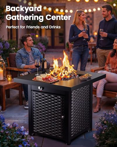 The Ciays Propane Fire Pits 28 Inch Outdoor Gas Fire Pit is constructed from alloy steel with a steel finish for enhanced durability and sturdiness. It is also designed for easy assembly, so you wont have to spend hours putting it together. With its attractive rattan top design, this fire pit table will look great on any patio or deck. And with its reasonable price tag, its a great value for money too!
