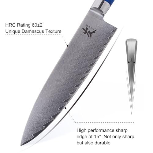 When it comes to finding the right kitchen knife, the SAMCOOK Japanese VG10 Professional Gyuto Knife is an excellent option. This 8 inch chef s knife is made with 67 layers of VG 10 high carbon stainless steel and has a HRC of 60 2, making it both durable and easy to maintain. It also has a very sharp edge and perfect arc 10 15 on each side that make it perfect for slicing, dicing, and shredding all kinds of food.