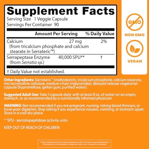 If you re looking for a product that helps support healthy sinuses and breaks down unwanted proteins, Doctors Best Serrapeptase Non GMO Vegan Gluten Free is the perfect choice. This product is made with Serrapeptase Enzyme from Serratio sp. 40,000 SPU and comes in a 90 count bottle.