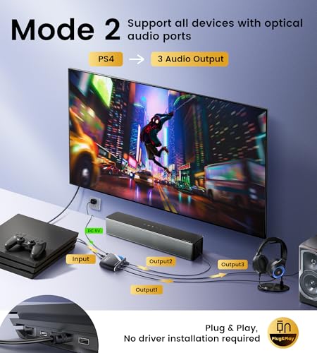 The splitter is very easy to install, making it great for people who are not tech savvy. All you need to do is plug it in and you are ready to go. It is compatible with most devices such as Apple TV, cable boxes, Roku, Xbox, PlayStation, Blu ray players, amplifiers and speakers. It also supports a transmission distance of up to 40m when connected by an optical fiber cable with a loss of 0.2db/m or less.
