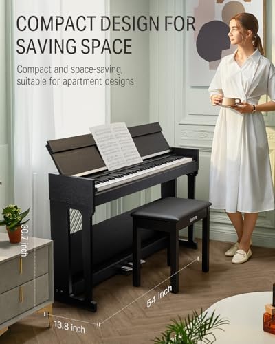 The Donner DDP 90 Digital Piano 88 Key Weighted Keyboard Piano is a great choice for both new and experienced piano players alike. With its contemporary design, its perfect for smaller apartments or home, allowing you to have a full sized digital piano without taking up too much space.