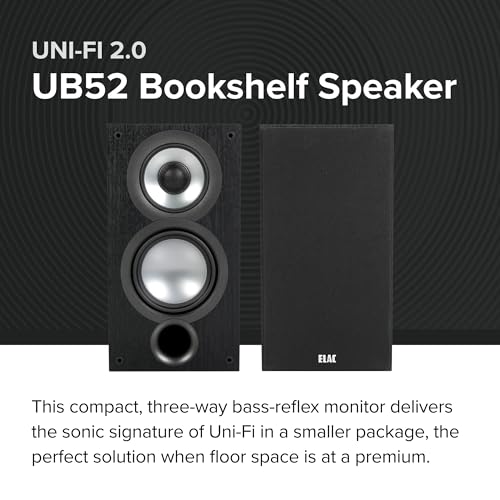 I recently had the opportunity to try out the ELAC Uni Fi 2.0 UB52 Bookshelf Speakers and was very impressed with their performance. The speakers have a true three way design, which includes a newly developed concentric driver featuring a 4 aluminum midrange and a 1 wide roll surround tweeter. Additionally, there is a single piece aluminum cone 5 1/4 bass driver, providing great sound quality and deep bass. The 6 ohm nominal impedance makes them compatible with virtually all receivers and amplifiers on the market.