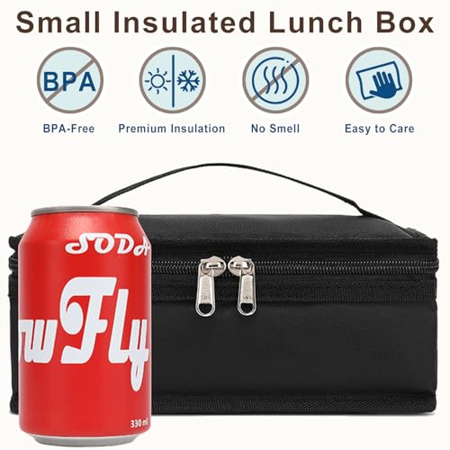 The FlowFly Small Insulated Lunch Box is an ideal lunch box for work, school, and picnics. Its made from durable 600D polyester and features a food grade aluminum foil interior and sturdy zippers. The lunch box also includes a padded 5mm PE foam for extra insulation and comes in a black color. With its simple and elegant style, this lunch bag is suitable for all people such as businessmen, teachers, and students.