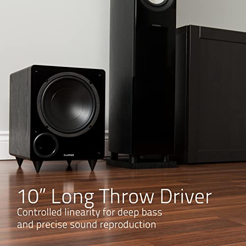 I recently had the opportunity to test out the Fluance DB10W Low Frequency Powered Subwoofer, and I was very impressed. From its powerful 10 inch long throw driver to its precision crafted wood cabinet, this subwoofer packs a punch. The design of this subwoofer is sleek and modern, with a black finish that blends into any home theater setup. The included remote control makes it easy to adjust the volume and bass levels, and the auto power on feature ensures energy efficiency.