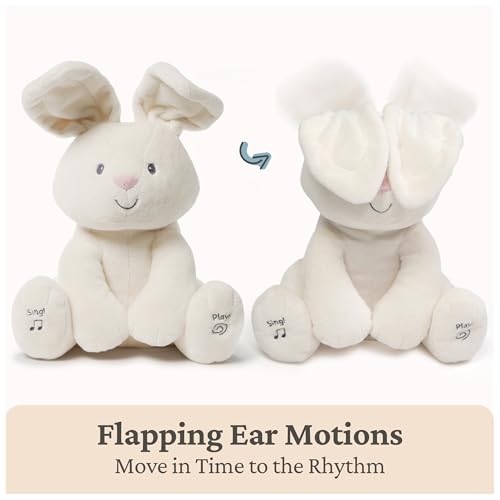 GUND has been crafting unique and classic teddy bears and stuffed animals for 125 years, and their commitment to quality and innovation shows in this product. Flora is a sweet singing bunny that comes to life with the push of a button, featuring two play modes to entertain babies. The plush is incredibly soft, making it perfect for cuddles. It features enhanced audio and volume controls, along with interactive play press her left foot to engage in a game of peek a boo, or press her right foot to sing along to a playful song.