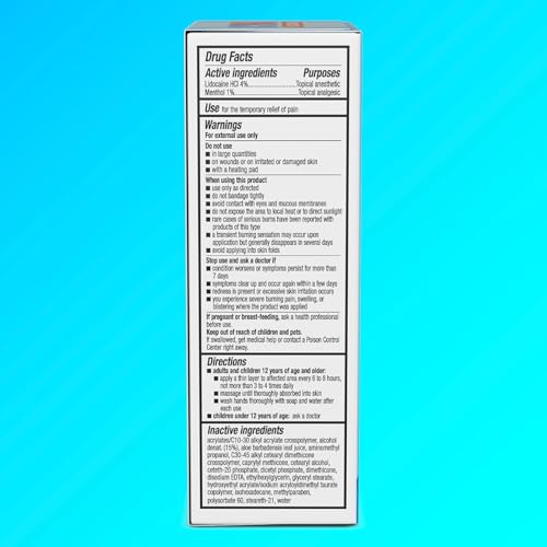 I have used the product for temporary relief of minor aches and pains associated with arthritis, muscle pain, back pain, knee pain and foot pain. It contains lidocaine to desensitize aggravated nerves, as well as menthol for added soothing relief. The cream is non greasy and easy to apply. It can be used up to three times a day, every 6 8 hours, making it convenient for those who suffer from chronic pain.