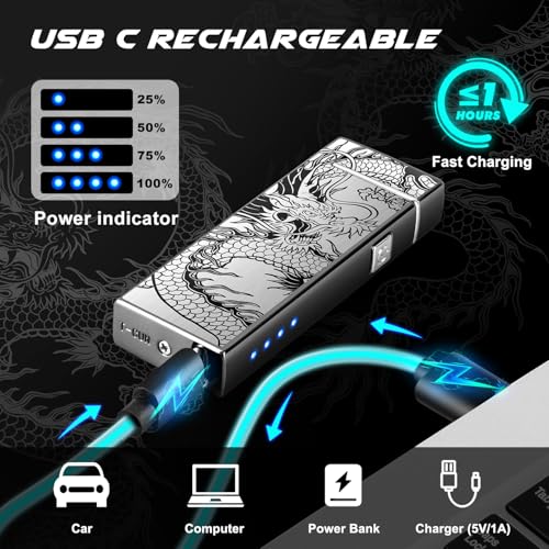 I recently had the pleasure of testing and reviewing the LCFUN Rechargeable Electric Arc Lighter. This stylish and unique lighter is crafted from high quality zinc alloy and high temperature resistant ceramic plates. The dragon symbol engraved on it is a sign of good luck and the overall design is compact and beautiful.