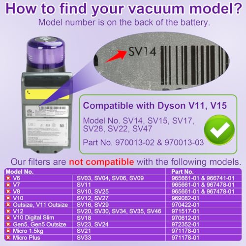 compatible device | Fits for Dyson V11 Animal V11 Torque Drive V11 Complete V11 Extra V11 Absolute V11 Cordless V15 V15s Detect SV14 SV15 SV17 SV22 SV28 Vacuums. Compare to Part 970013-02 |