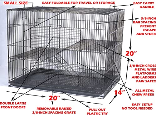 The Mcage Three Size, 3 Level Shelves Ladders Cage is perfect for small pets such as chinchillas, ferrets, rats, dwarf hamsters, guinea pigs, rabbits, mice, hamsters, gerbils, sugar gliders and other critters. Its easy to assemble no tools needed so you dont have to hire someone to do it or spend hours trying to figure it out yourself. Plus its foldable so if you need to store or travel with it you can do so without taking up too much space.