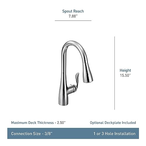 In addition, the Moen Arbor is designed to be installed through either 1 or 3 holes, so you dont have to worry about any extra installation steps. Plus, it comes with an included escutcheon which is great for those who want a more customized look. The product also features the Reflex system for smooth operation and secure docking of the spray head. The flexible design makes it easy to move around without any hassle or difficulty.