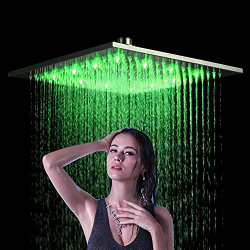 If you re looking for a modern and luxurious shower head that provides an amazing experience, then the NeierThodore LED Changing Color Square Rainfall Shower Head Overhead Sprayer in Brushed Nickel is an ideal choice. This stylish square shaped shower head from NeierThodore features a LED lighting system that changes color depending on the temperature of the water, making it easy to judge the water temperature. It also comes with a 1/2 standard connection with rubber gasket and ball joint for easy installation.