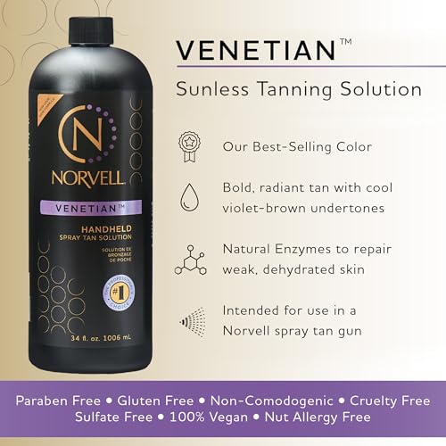 If you are looking for a luxurious sunless tanning solution that will give you the dark and rich color of the European Riviera without having to take the long flight, then the Norvell Premium Sunless Tanning Solution Venetian is for you. This innovative formula blends with all skin tones to provide a deep, long lasting tan with its unique combination of violet and brown tone bronzers.