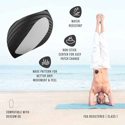 The patches feature an optional non stick middle section, so there is no need to remove your sensor to change the adhesive patches. They have a wave pattern for better grip, movement and feel. What s more, these Dexcom 6 accessories are made from a special cotton and spandex blend that is quick drying, breathable and stretchy. Plus, the patch lasts for up to 14 days and comes in a pack of 20!