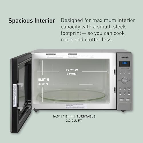 The Panasonic NN SD975S is a countertop microwave that comes with a capacity of 2.2 cubic feet. It has an aluminum material and stainless steel color that looks very stylish and modern. It also has a sleek design that does not take up too much space in my kitchen countertop. The item dimensions are 23.88 x 19.44 x 14 inches and the item weight is 36.8 pounds which makes it easy to move around if needed.