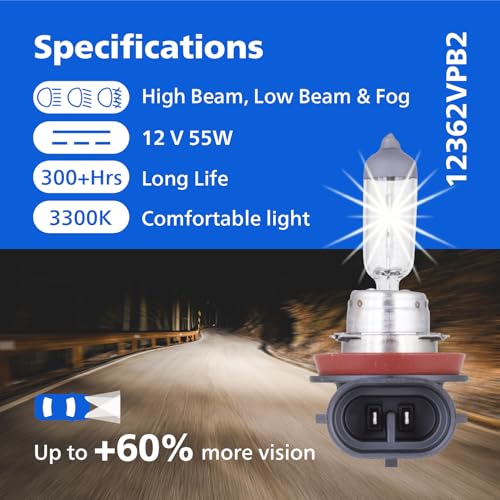 I recently tried out the Philips Automotive Lighting H11 VisionPlus Upgrade Headlight Bulb for my car and was really impressed with the quality of this product. The bulbs are designed to provide up to 60 more vision on the road compared to a standard minimum legal requirements in low beam headlamp test results, and I can definitely say that it delivered.