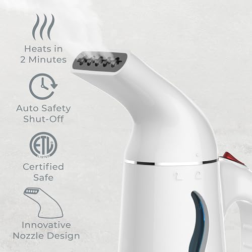 The Pure Enrichment PureSteam Portable Handheld Garment Steamer is designed to be lightweight and portable, making it great for traveling. It has an improved nozzle design that distributes steam powerfully and consistently, so it can easily remove stubborn wrinkles from clothing, drapery, furniture upholstery, bedding, and table linens. It also has a fast heating water tank that heats quickly to emit wrinkle busting steam in just two minutes. The high capacity, easy fill water tank lasts for 10 minutes of continuous steaming. This product also includes an automatic shut off safety protection if the unit gets too hot or too low on water.