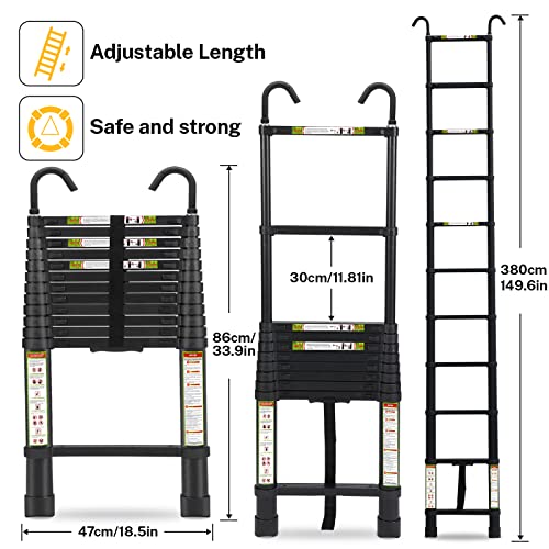 This ladder is also incredibly easy to use and maneuver due to its telescopic design. It takes only a few seconds to extend or retract the ladder depending on your needs, and it can be extended up to 150 inches. Additionally, the handrail positioned at the bottom ensures that you have a secure grip when carrying and using the ladder.