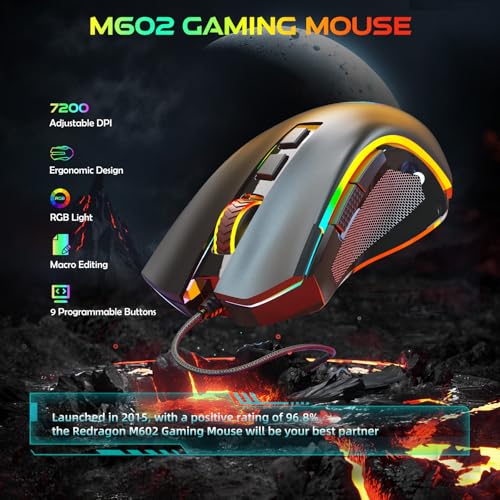 The Redragon M602 RGB also comes with several features that make it great for gamers. It has seven programmable buttons, five memory profiles each with its own distinct LED color option for quick identification, and seven different backlight modes. Plus, it has 10G acceleration and up to 7200 DPI user adjustable 800/1200/1600/2400/7200 DPI which makes it ideal for fast paced games where precision is key.