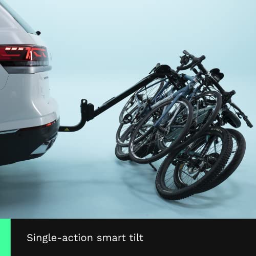 The KAC KAC S4 Hitch Mounted 4 Bike Suspension Rack is designed for easy installation and assembly. All hardware is included in the box, and installation instructions are easy to follow. The quick release tilt lever provides easy access to your vehicle s rear cargo area, so you can reach for gear without having to unload your bike. This folding bike rack creates a low profile when not in use and can be stored easily.