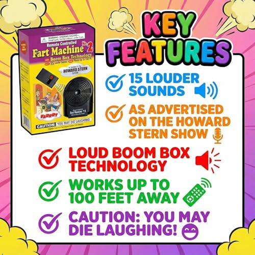 Overall, I highly recommend the T.J. Wisemen Remote Controlled Fart Machine 2 with Boom Box Technology as an excellent choice if youre in search of a quality gag gift or practical joke item that is sure to get some laughs! Its realistic booms box technology provides an unparalleled experience while its wireless remote control allows for pranks from afar. With 15 unique fart sounds available, youll never run out of new ways to prank your friends and family!