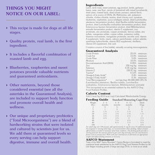 The first thing I noticed about Taste of the Wild Sierra Mountains Roasted Lamb dry dog food is that it is made with real lamb as the 1 ingredient, which makes up 25 of the total protein content. I appreciate that it also has a variety of nutrient rich superfoods such as vitamins, minerals, and omega fatty acids for healthy skin and coat. This product also contains K9 Strain Proprietary Probiotics for improved digestion and overall health and wellness, which is important to me as a pet parent.