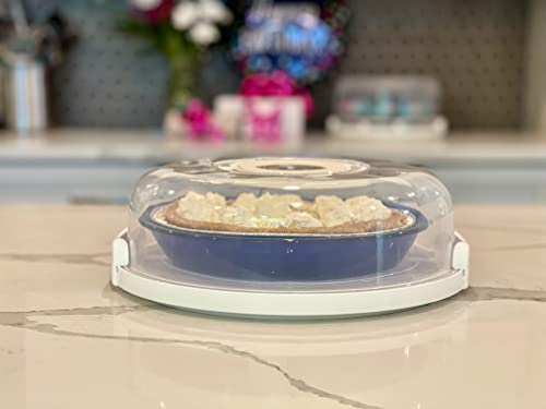 The Pie, Cake, and Cheesecake Carrier is designed with two secure clamps that click loudly when they are most secure. This feature ensures that your treats will remain safe and secure during transport. The carrier also fits your pie perfectly, keeping it in a tight configuration while letting in little to no air. This will keep your pie or cake fresh during transport.