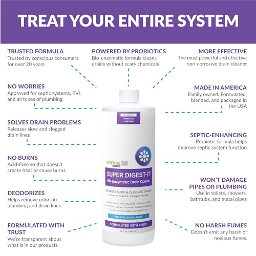 The Unique Digest It Bio Enzymatic Drain Opener is ideal for anyone looking for a safe and effective way to clear out clogged drains. It can be used as a preventative measure as well using it once a month helps keep your drains working properly by helping break down waste build up before it becomes an issue. As someone who has tried numerous drain openers in the past, I can honestly say that this product lives up to its claims and I highly recommend it!