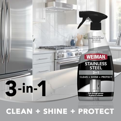 If youre looking for an effective cleaner and polish specifically designed for stainless steel surfaces then look no further than Weiman Stainless Steel Cleaner and Polish with MicroFiber Cloth. Not only does it make quick work of removing dirt and grime from your surfaces but it also leaves behind a protective barrier that helps keep them clean for longer periods of time while leaving them looking shiny and new. Highly recommend!